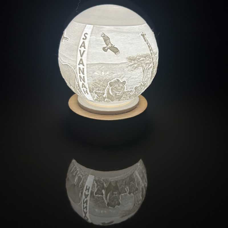 Embark on an unforgettable adventure from the comfort of your home with our captivating 3D-Printed LED African Savannah Globe! This globe transports you to the vast, sun-drenched plains of Africa, where majestic elephants roam, graceful giraffes graze, and the iconic acacia trees dot the horizon, all brought to life by a warm, ambient glow.